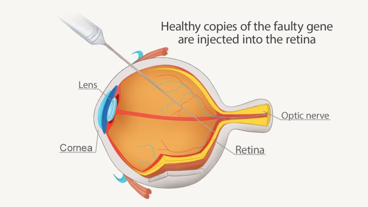 This new treatment involves injecting healthy copies of the faulty gene into the retina. The copies are packaged inside a harmless virus, which enables them to penetrate the retinal cells.